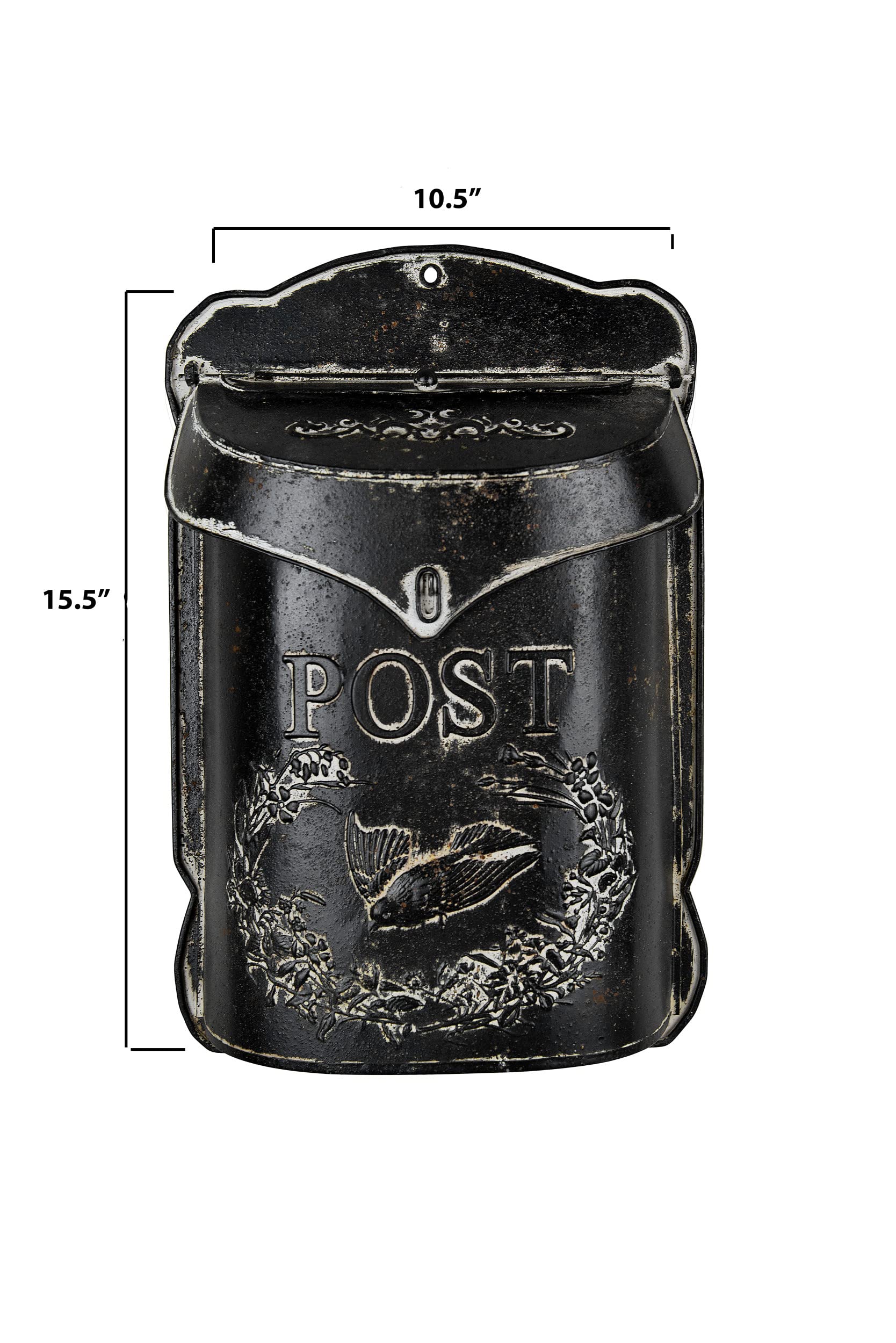 Creative Co-Op Black Embossed Tin Post Letter Box—