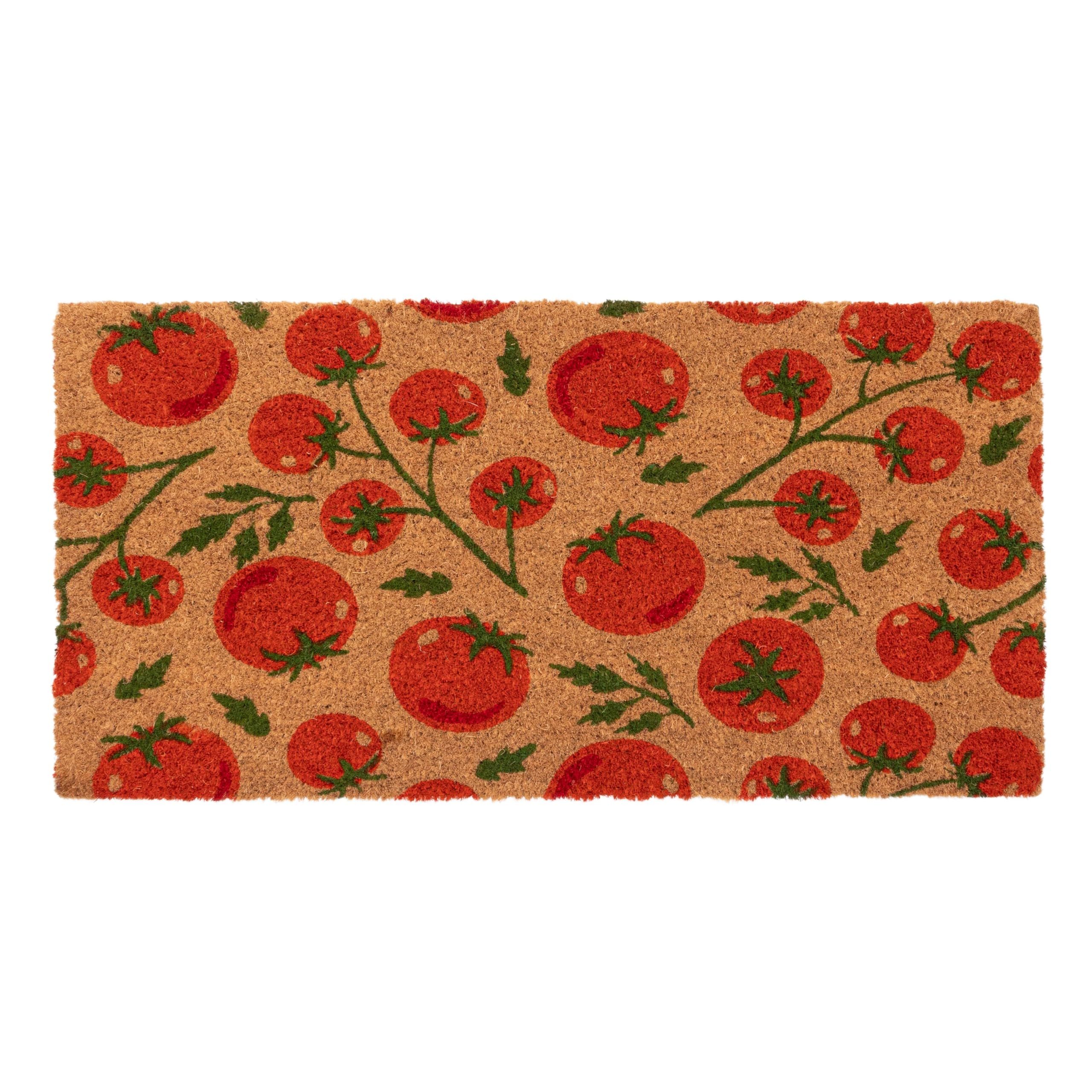 - This playful doormat features natural coir construction with a tomatoes print and non-slip PVC backing.